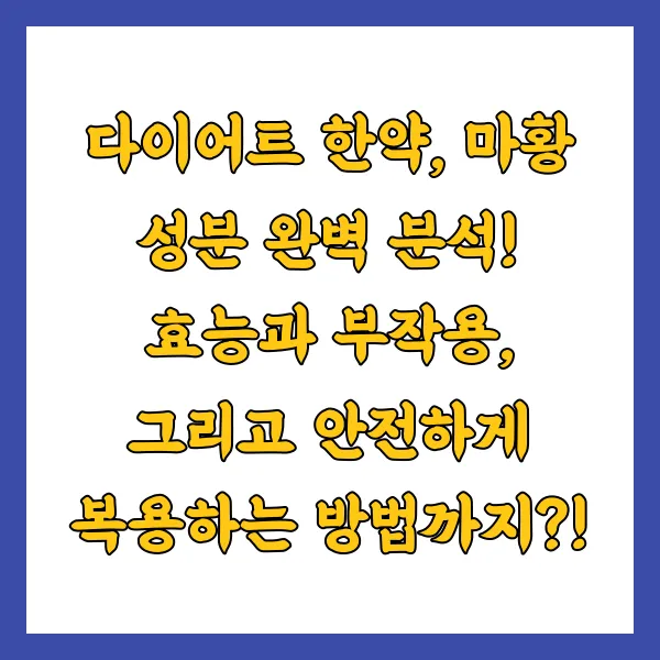 다이어트는 평생의 숙제라고들 하죠? 😭 그 험난한 여정 속에서 한약의 도움을 받고자 하는 분들도 많으실 겁니다. 특히 다이어트 한약에서 빼놓을 수 없는 성분, 바로 마황! 마황은 과연 효과적인 다이어트 파트너일까요? 아니면 위험한 동반자일까요? 🤔 지금부터 마황의 모든 것을 파헤쳐 보겠습니다!